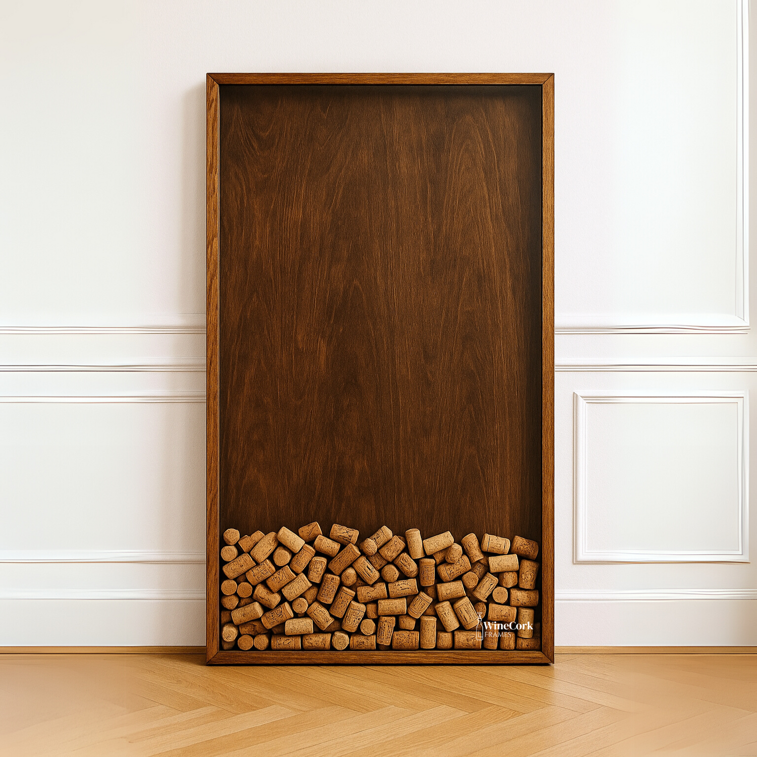 Vores WineCorkFrames skiller sig ud som de bedste på markedet, takket være vores omhyggelige håndværk i solidt fyrretræ og danske rødder. Med en smart bagplade sikrer vi, at vinpletter ikke ødelægger dine vægge. Som en dansk virksomhed går vi ekstra langt for at levere produkter af høj kvalitet og elegance.